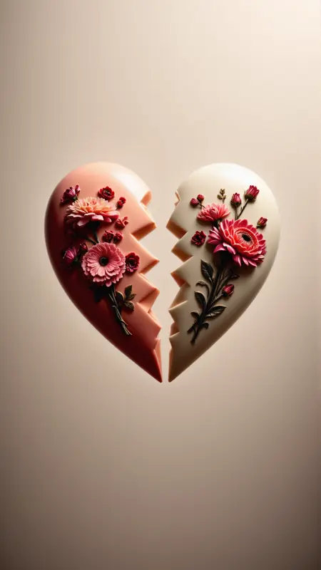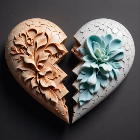 a heartbreak split heart. On the left side is an owl | On the right side is Whale. <lora:BrokenHeartFlux:0.9>