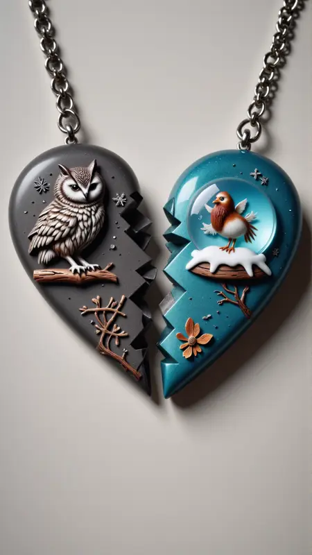 此模型(理论上)允许你用任意两个主体制作一条破碎的心形项链:一个在左侧,一个在右侧。提示词有严格要求,请遵循以下指南。
