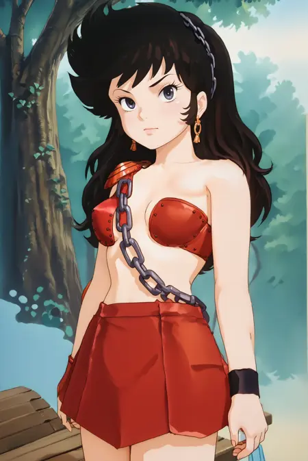 V3: I removed the extra, so now it's all straight from the series and OVAs. Made some background adjustments, so things should be in a pretty sound place. All the triggers are the same, but if you have an issue with her loose, long hair still showing a headband, put "headband" in the neg prompt. That being said, the Pony version is shelved for now. I've been working on a version for much of this week but still can't quite get it to turn out right. There are some other characters I want to work on first before I return to the Pony.