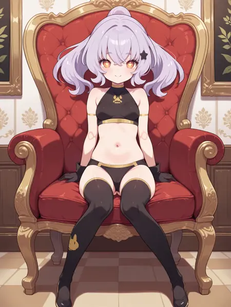 태그(옷 2): 검은색 속옷, 검은색 허벅지 스타킹, 검은색 장갑, 노란색 허벅지 끈, 녹색 목걸이