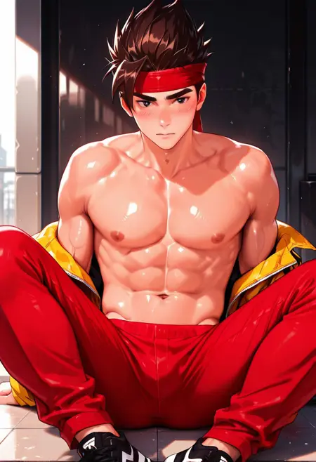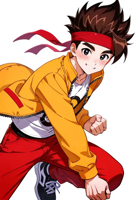 기반: 키키타이엔, 1소년, 단독, 남성 초점, 빨간 헤드밴드, 갈색 머리, 두꺼운 눈썹, 검은 눈, 스파이크 머리, 스파이크 머리