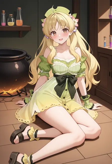 ayeshadef,帽子,渐变连衣裙,绿色裙子,露肩裙,绿色连衣裙,层叠裙,透明裙层,裙内衬衫,白色肩带,黑色蝴蝶结,腰间蝴蝶结,腕部束带,蕾丝边饰,绿色裙子,裸露肩膀,大腿,