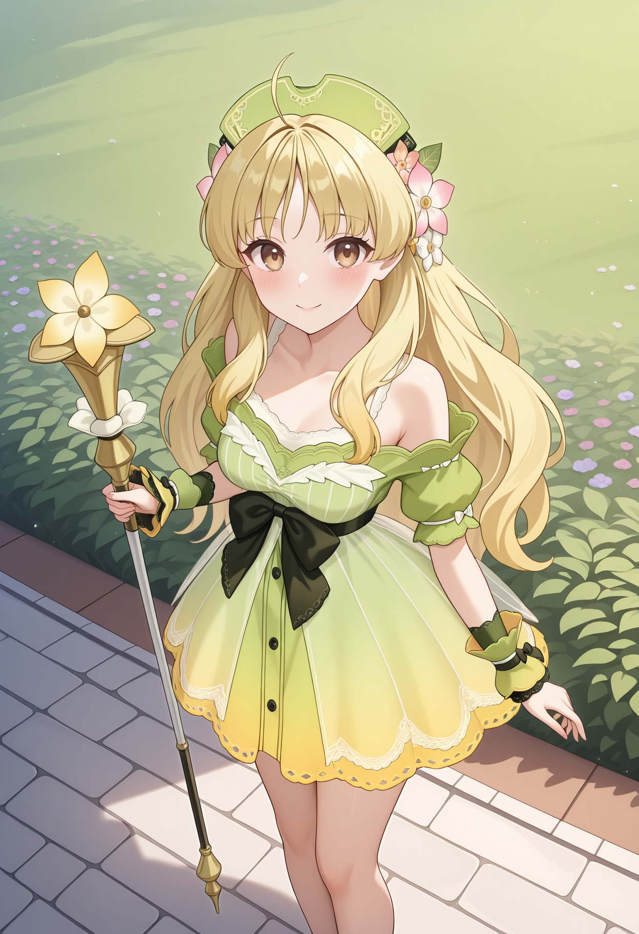 aaayesha,金发,棕眼,长发,发饰花朵,天线发,