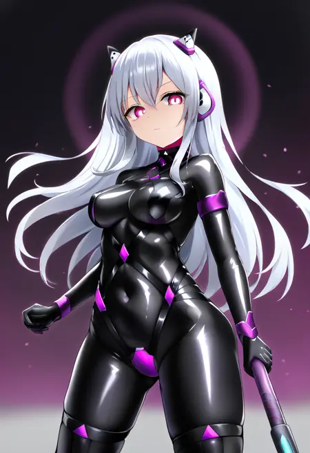 Corrupted: HasumiMM, corrupt_bodysuit, corrupted, pink eyes, glowing eyes,