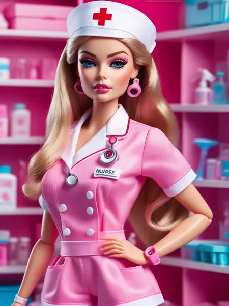 ๐๐ ํธ๋ฆฌ๊ฑฐ: inboxDollPlaySetQuiron style, Barbie, gift box, no humans, playset, in a box, full body, cover page, toy, character print, doll, toy playset pack, in a gift box,