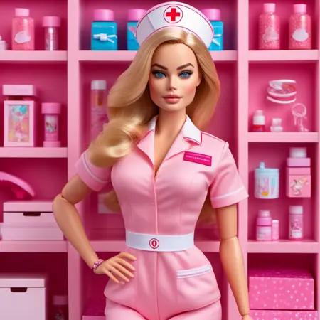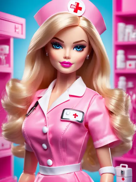 Ultra high resolution, high resolution, (masterpiece), hyper-detail, 1girl, inboxDollPlaySetQuiron style, full body, no humans, doll, toy, barbie, in a gift box, character print, blonde hair, middle length hair, light blue eyes, sprinkles, barbie color theme, beautiful female barbie, full lips, parted_lips, heavy make-up, smoky eyes, detailed eyes, pretty face,3DMM,inboxDollPlaySetQuiron style,(margot robbie), lyco:SDXL1.0\_quiron\_inboxDollPlaySet\_v5.1\_lycoris:0.97