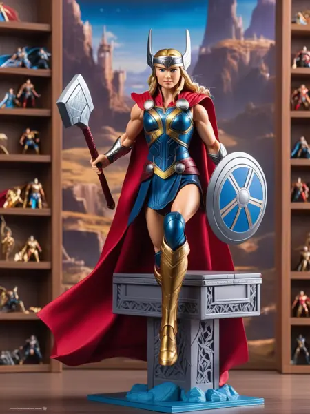 premium playset toy box, (masterpiece, best quality, ultra detailed, absurdres), (diorama:1.2), action figure box, (inboxDollPlaySetQuiron style), the superheoine lady Thor, (plastic toy playset pack), inside gift box, lyco:SDXL1.0\_quiron\_inboxDollPlaySet\_v5.1\_lycoris:0.97