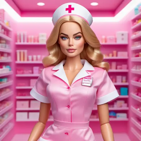 超高解像度、高解像度、(masterpiece)、ハイパーデテール、1girl、inboxDollPlaySetQuiron style、フルボディ、no humans、doll、toy、barbie、in a gift box、character print、金髪、ミディアムヘア、薄青い瞳、スプリンクル、バービーカラー主題、美しい女性バービー、厚い唇、口を開けた、濃いメイク、スモーキーアイ、詳細な目、美しい顔、3DMM、inboxDollPlaySetQuiron style、(margot robbie)、lyco:SDXL1.0_quiron_inboxDollPlaySet_v5.1_lycoris:0.97