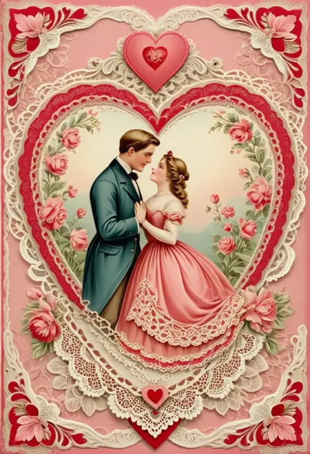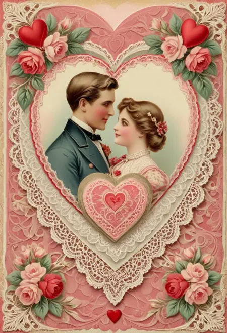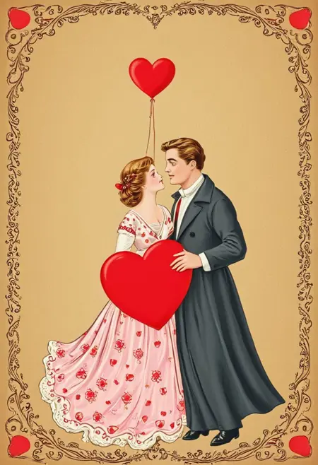 制作一张复古情人节贺卡,使用以下触发词来创建各种元素: