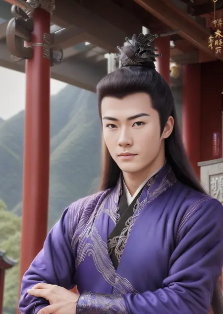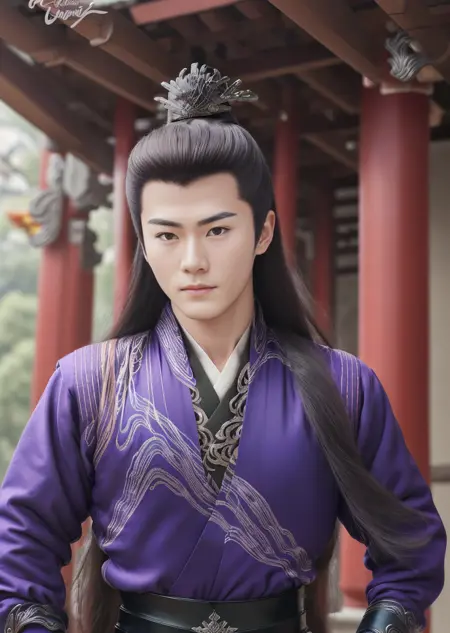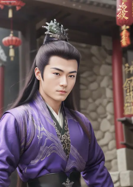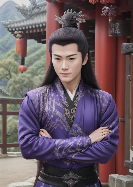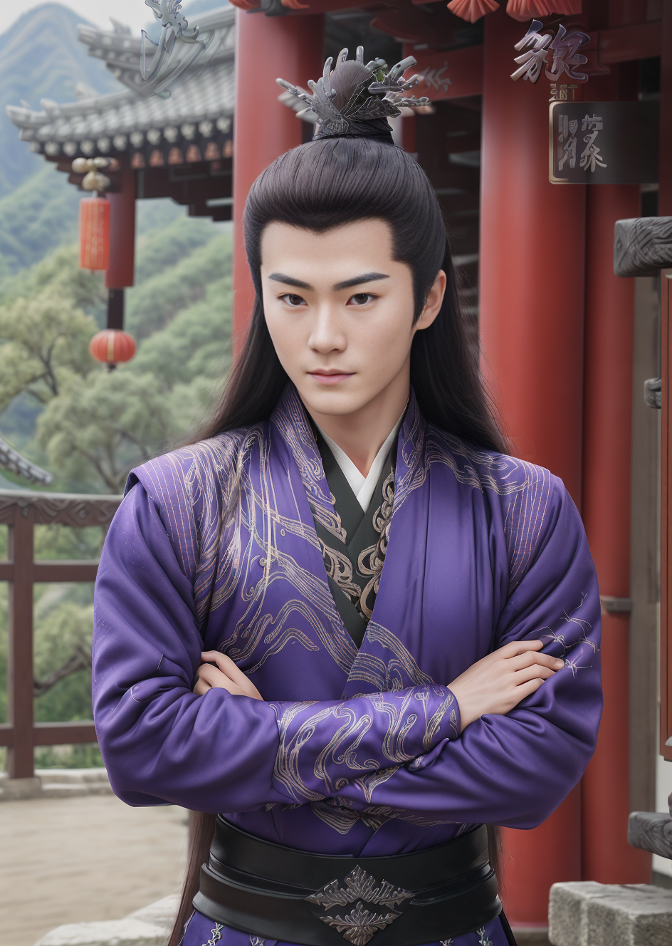 本Lora使用了我收集的部分图片制作而成,将冯龙展现于他最具代表性的服饰上:一件美丽的紫色汉服!