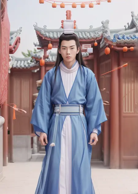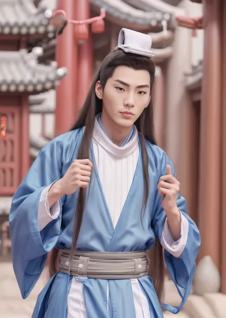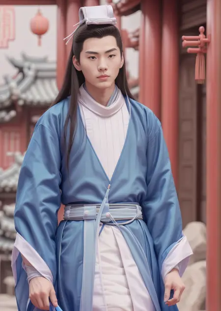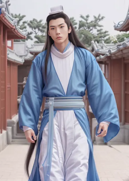 This Lora has been optimized to reproduce his most recognizable clothing, a nice blue hanfu. It does a much better job than the checkpoint.