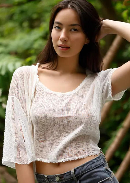 透明/湿润材质可受益于 "sheer clothing"、"see-through"、"wet clothing"、"visible nipples"