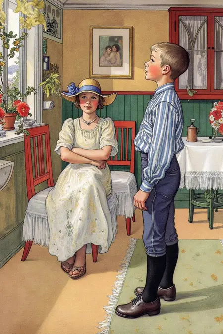 Larsson, like J.C. Leyendecker, is another one of my favorite artist to include in my SD1.5 and SDXL prompts. His name tends to add a light, slightly quaint touch to the images. Here is my tribute to this artist who created such charming artworks.