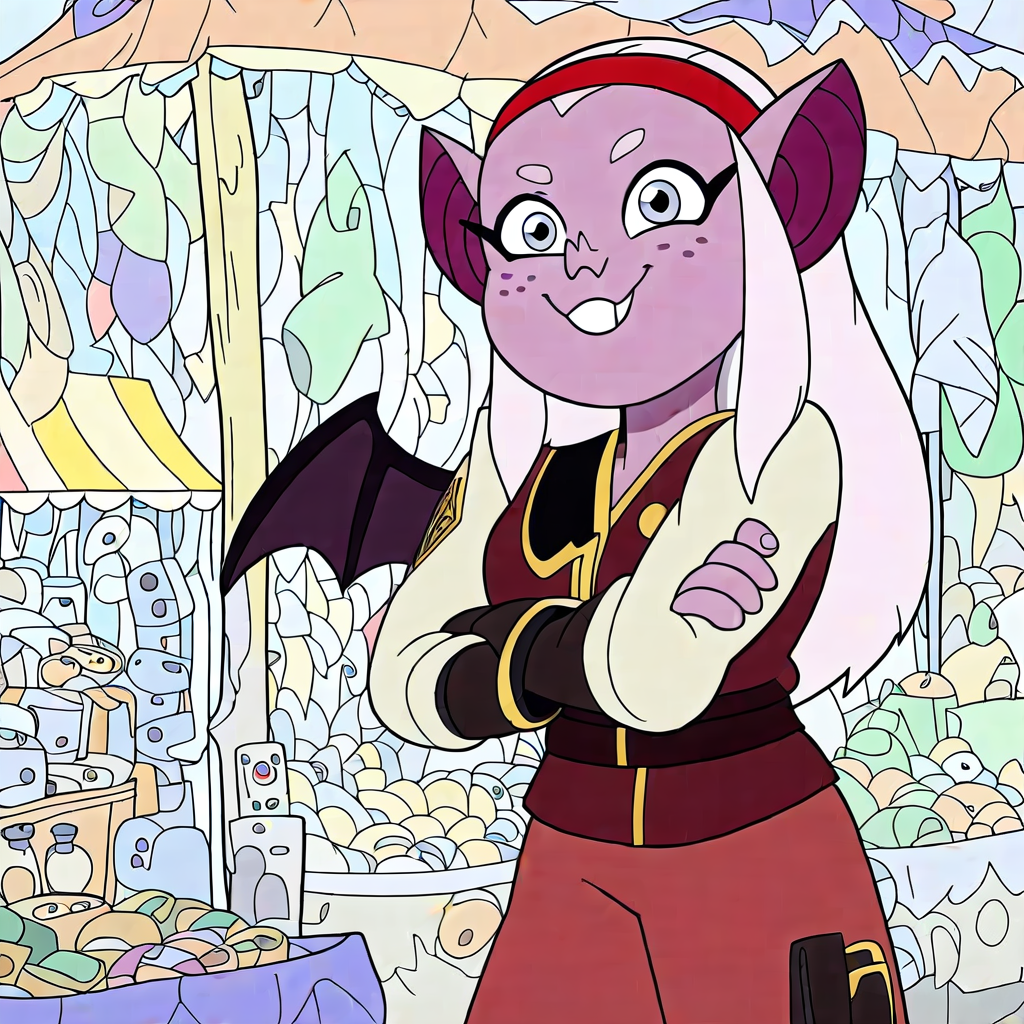 基础提示词:安伯,灰色头发,长发,紫灰色皮肤,雀斑,圆形银色眼睛,蝙蝠翅膀,蝙蝠状耳朵,
