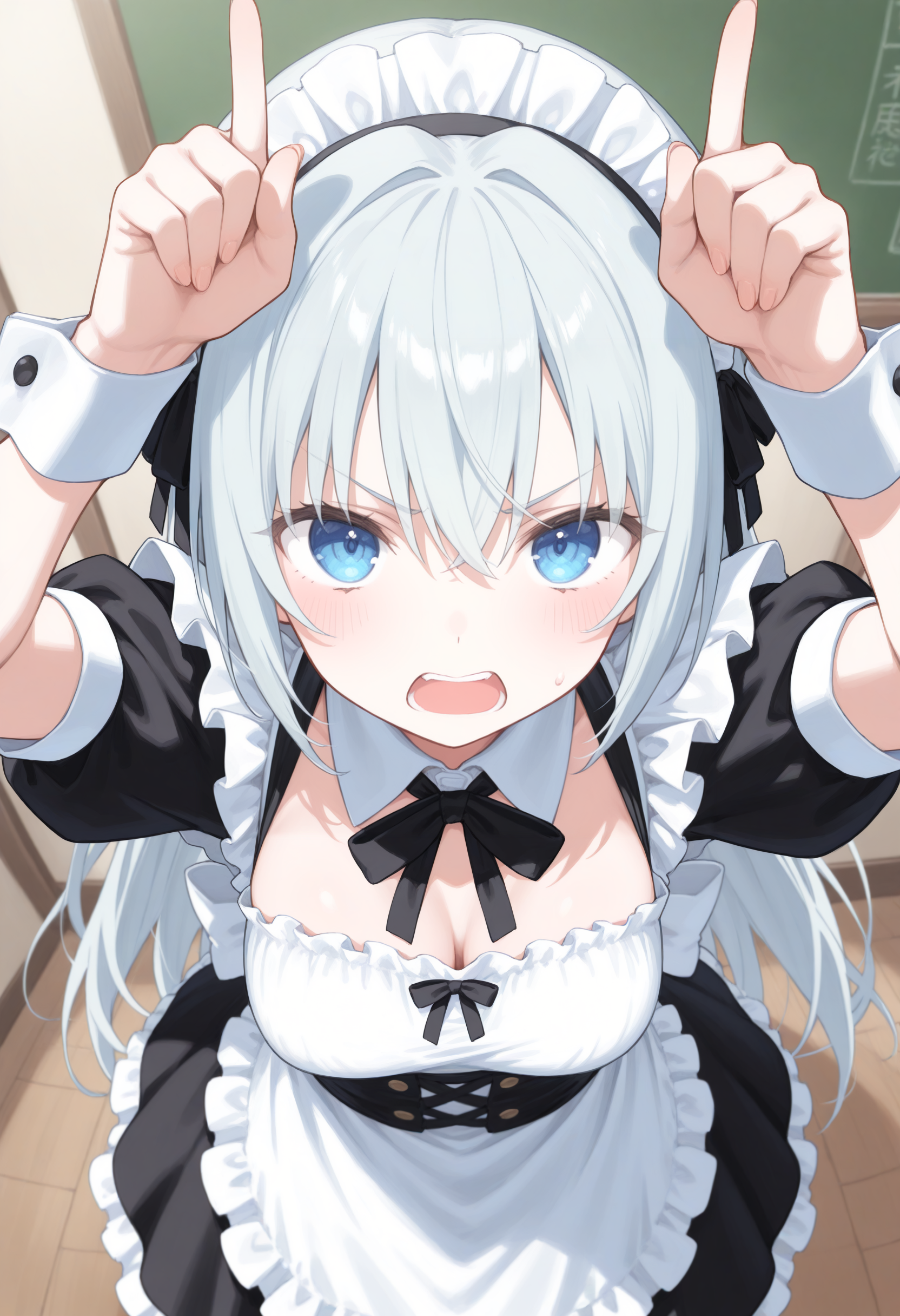 트리거만으로도 문제없지만, 다른 LoRA와 병용 시 재현성이 낮은 경우 'arms up', 'index fingers raised' 등의 표현을 추가하세요.