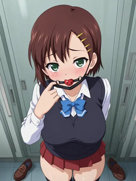 With ball gag: mask pull, mouth mask, removing mask, ball gag, ball gagged, gagged,