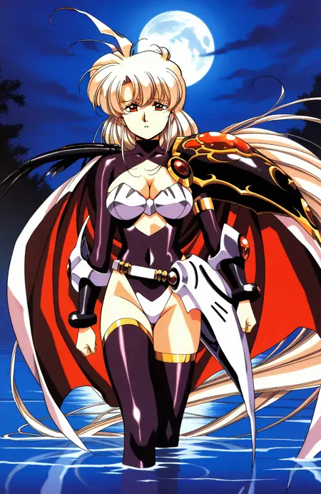 拉娜(兰格里斯II),1个女孩,独身,长发,胸部,超长发,金发,棕眼,白发,大胸,飘浮的头发,1990年代风格,