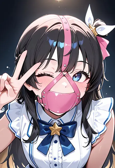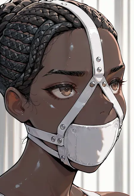 Recommended prompt is "panelgag, panel gag" and "face harness" for v0.5/"gag harness" for v1.0. "covered mouth" can help if you still get mouth artifacts. Strength 1.0 seems to work fine, go lower for close-ups and higher for wide shots if necessary as per usual. The "gag harness" tag has a tendency to imply body harnesses, put "breast harness, bondage harness" into the negatives if that's a problem. You can also try leaving the "gag harness" prompt out completely, which is especially helpful if you want it to be partially covered by hair or headwear of some kind.