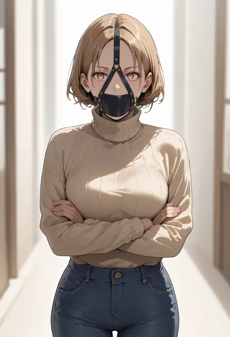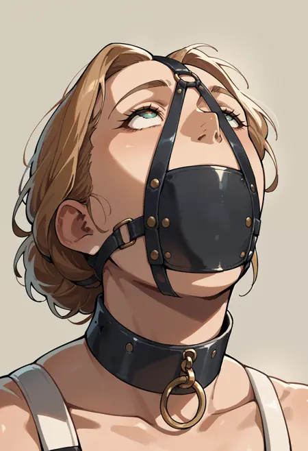 推奨されるプロンプトは、v0.5では「panelgag, panel gag」と「face harness」、v1.0では「gag harness」です。口元のアーティファクトが残る場合は「covered mouth」を追加すると助けになります。強度は1.0で問題なく機能しますが、必要に応じてクローズアップでは下げ、ワイドショットでは上げてください。通常、「gag harness」タグはボディハーネスを連想させる傾向があるので、それが問題になる場合は「breast harness, bondage harness」をネガティブプロンプトに入れてください。また、「gag harness」プロンプトをまったく使わずに試すのも有効です。特に、髪やヘッドウェアで部分的に覆われた状態を希望する場合に役立ちます。