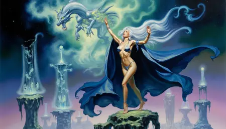 The "Boris Vallejo Art Style" LoRA brings a bold, high-fantasy art style that captures the essence of mythic storytelling, legendary battles, and divine beauty. This LoRA excels at rendering powerful warriors, celestial goddesses, majestic beasts, and dreamlike landscapes with deep, painterly textures and dynamic compositions. Whether depicting sensual yet fierce figures, mystical realms, or epic duels, every image emerges with awe-inspiring detail and striking contrast.