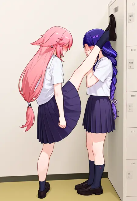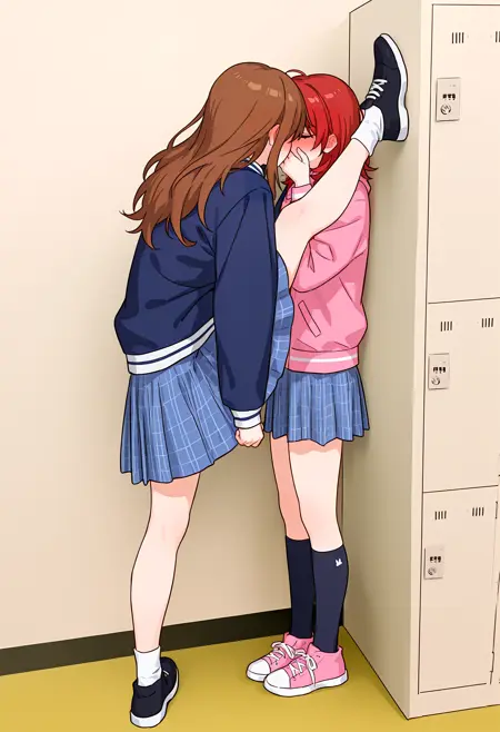 Trigger word: locker_foot_kabedon_(meme), against wall, kabedon,