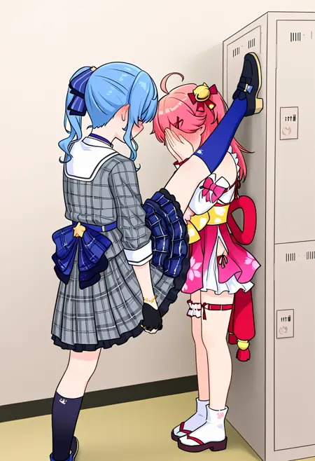 Trigger word: locker_foot_kabedon_(meme), against wall, kabedon,