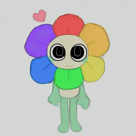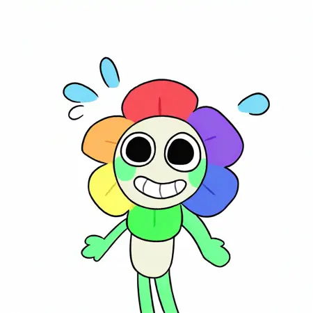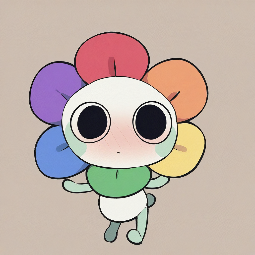 dandy, black eyes, blush stickers, rainbow flower, cartoony, solo, white torso