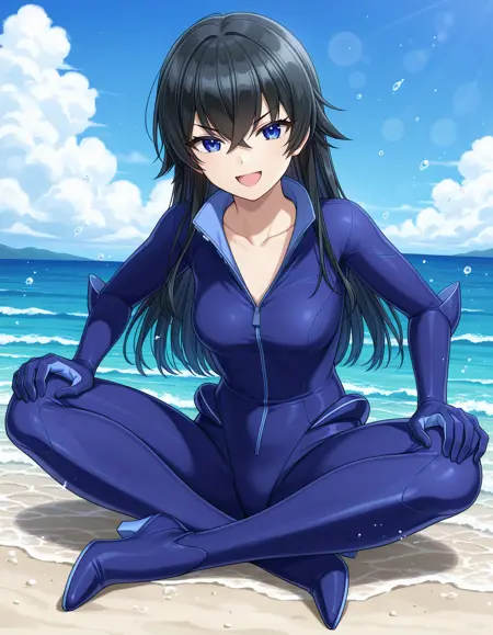 Otsuki_Uniform, blue bodysuit, elbow parts, collarbone, zipper