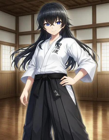 Otsuki_Dougi, dougi, long sleeves, black pants, hakama pants