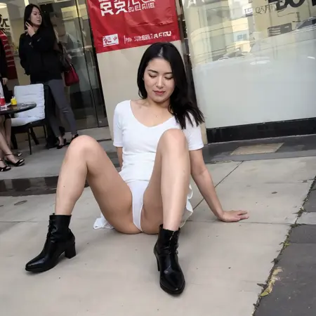 核心内容是女性坐在地上裙底走光的画面,