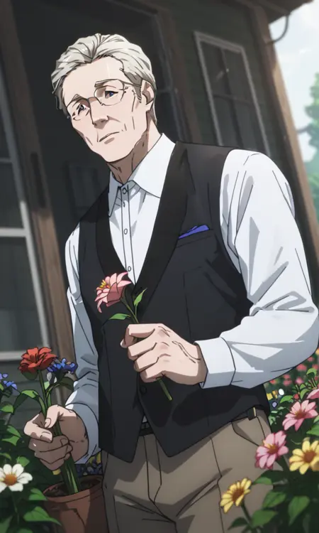 score_9, score_8_up, score_7_up, Lrfosterfather, 1boy, solo, old man, wrinkled skin, blonde-grey hair