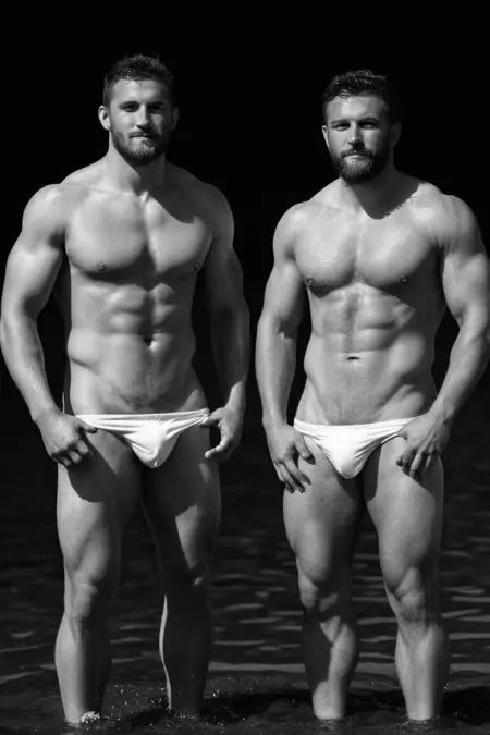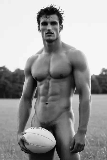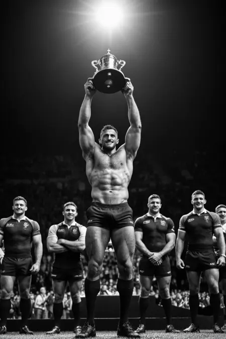 此风格旨在捕捉2000年代男性橄榄球日历的氛围。这类日历曾流行数年,通常包含健壮的橄榄球运动员在各种室内外场景中的精美照片(多为黑白)。通常没有或仅有极少的正面裸露,并大量使用橄榄球等道具遮挡裆部。