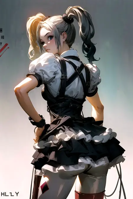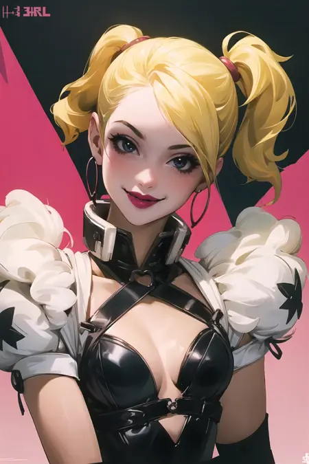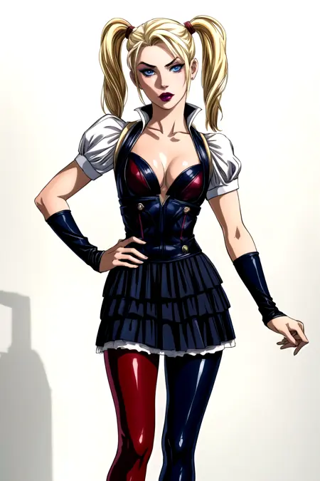 这个LoRA来自电子游戏系列《蝙蝠侠:阿卡姆》中的哈莉·奎茵。