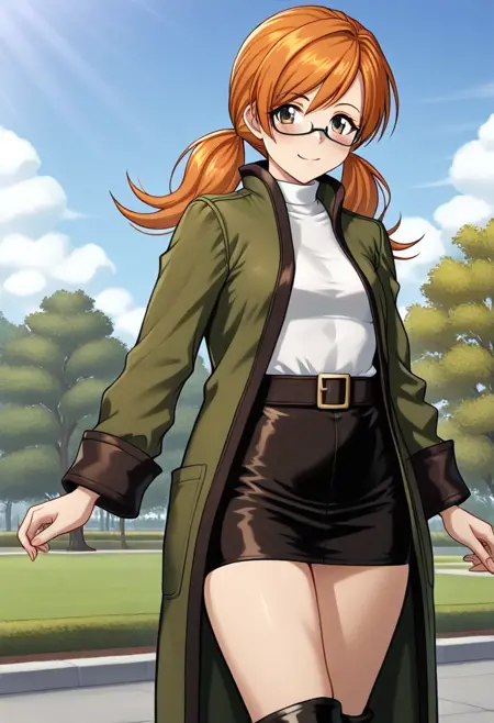 服装 - SCHLR,双马尾,半框眼镜,绿色外套,高领,铅笔裙,黑色鞋履