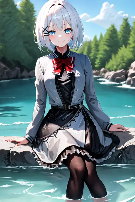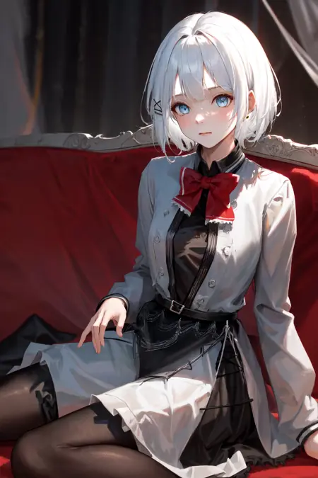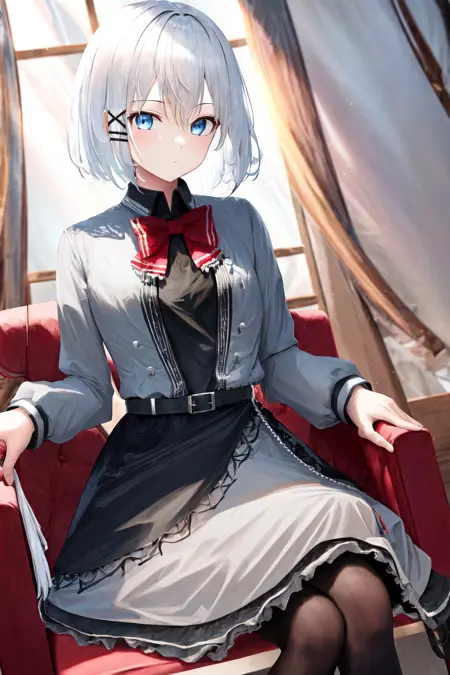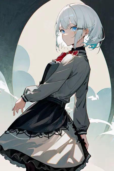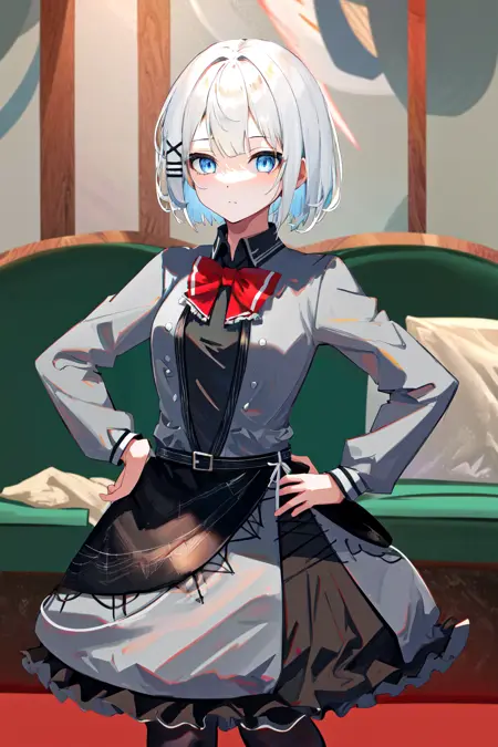 캐릭터 트리거: 1girl 흰 머리 파란 눈 x 머리 장식