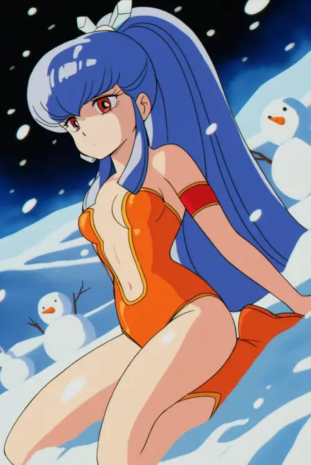 主要触发词: 奥雪,长发,浅蓝色头发,高马尾,刘海,发饰,红眼睛,复古艺术风格,1980年代(风格)