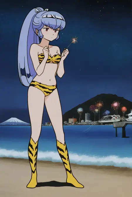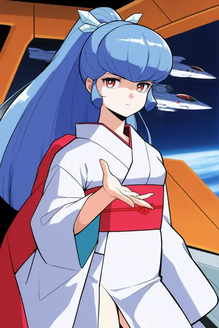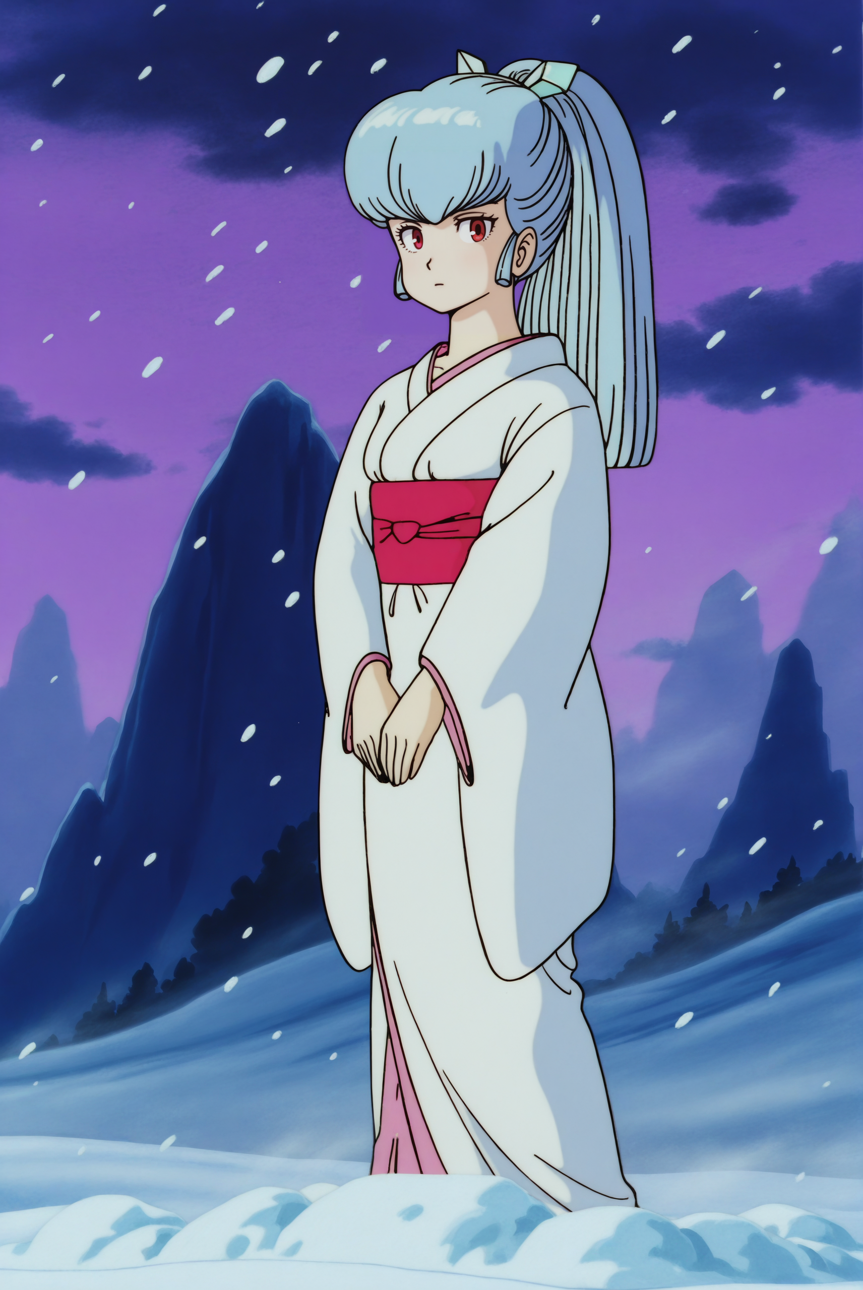 主要触发词: 奥雪,长发,浅蓝色头发,高马尾,刘海,发饰,红眼睛,复古艺术风格,1980年代(风格)