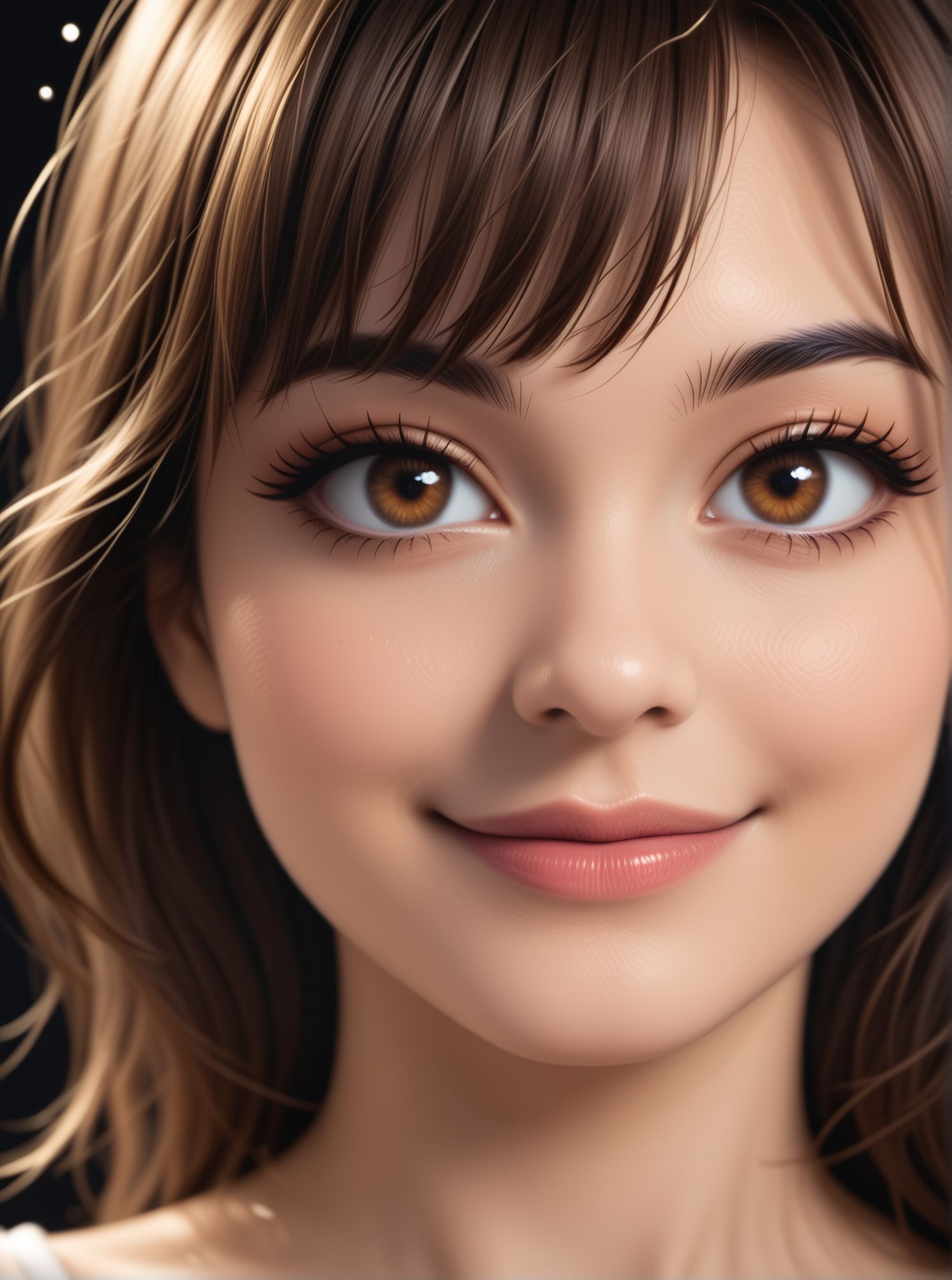 woman, brown eyes, bangs, brown hair, ponytail,