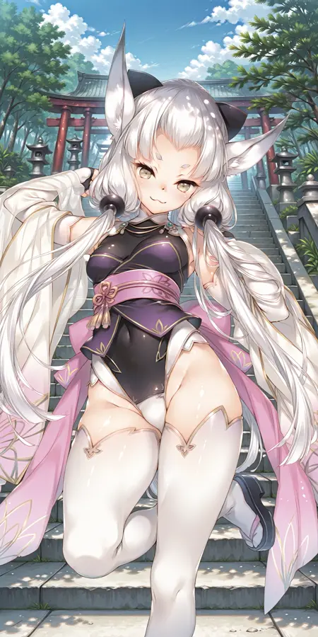 Shirayuki-主装,长袖,尾巴,和服,白色内裤,白色过膝袜,流苏,足袋,裸露肩膀,