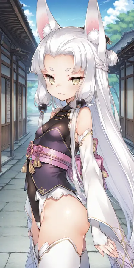 Shirayuki-主装,长袖,尾巴,和服,白色内裤,白色过膝袜,流苏,足袋,裸露肩膀,