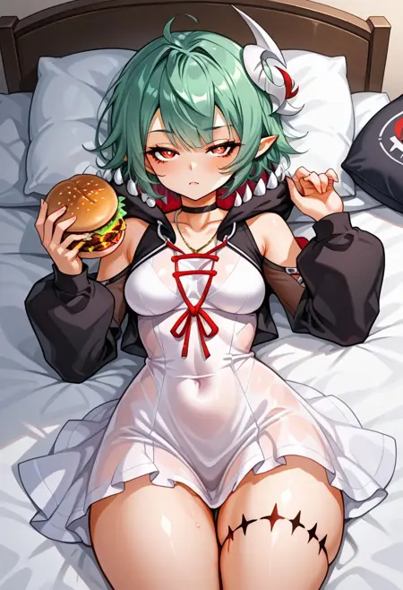 | 训练词汇 | NoahBrown, short green messy hair, red eyes, single white horn, horn over ear, single leg tattoo, stigmata tattoo已复制! official outfit, personal dress outfit, Rogue Demon Noah已复制! official outfit, skin-tight bodysuit outfit, Taimanin suit Noah已复制! official outfit, idol clothes outfit, idol Noah已复制! official outfit, ritual clothes outfit, Oni Princess Noah,已复制! |