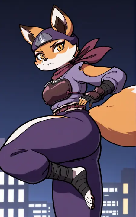 强化标签: 尾巴、狐狸尾巴、动物耳朵、毛茸茸、狐狸耳朵、狐狸女孩、毛茸茸女性、忍者、动物鼻子、腰带、身体毛发、黄色眼睛