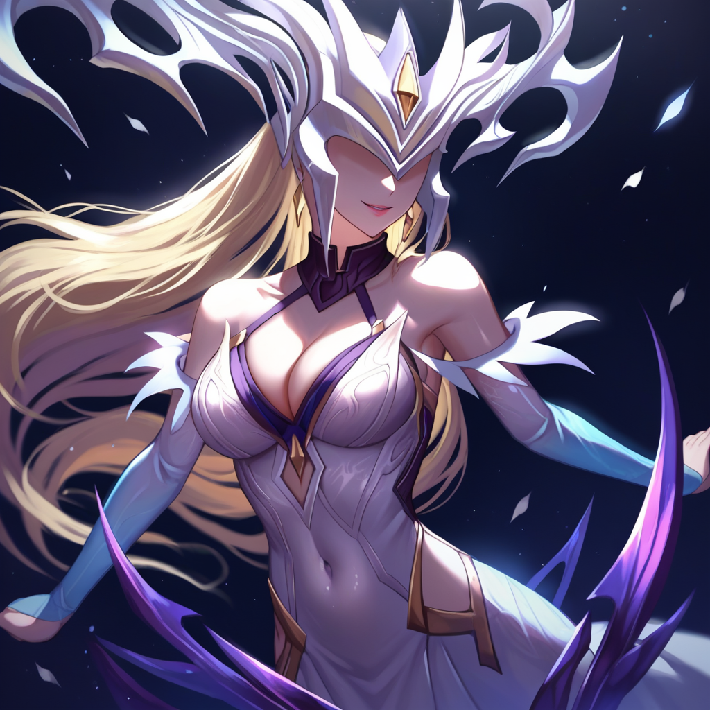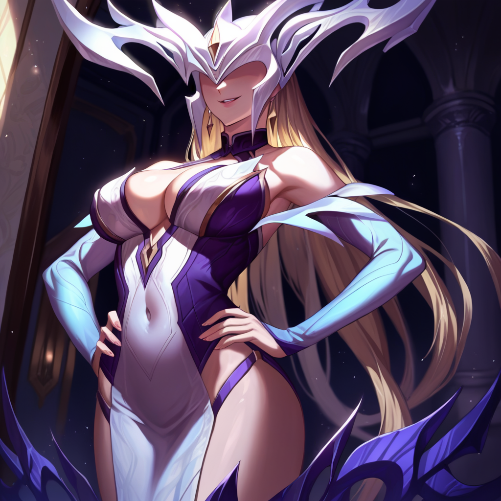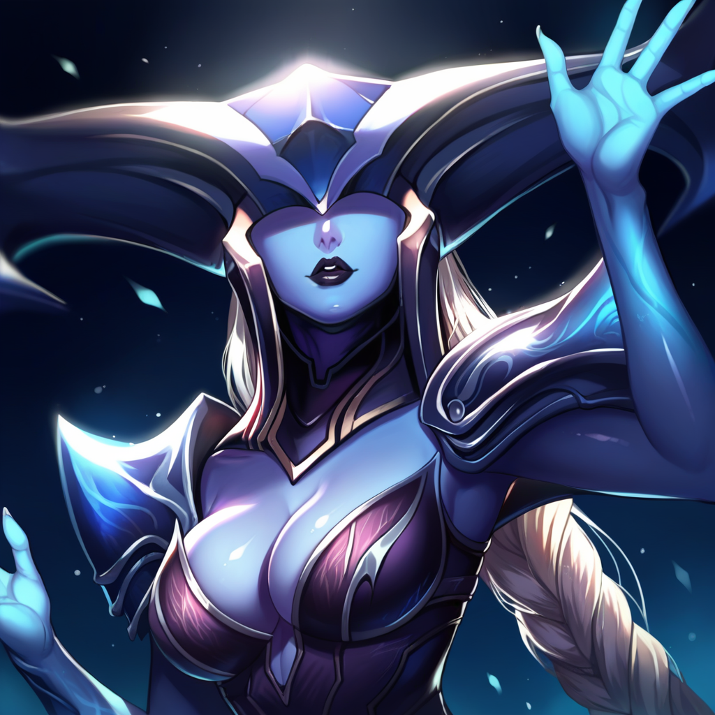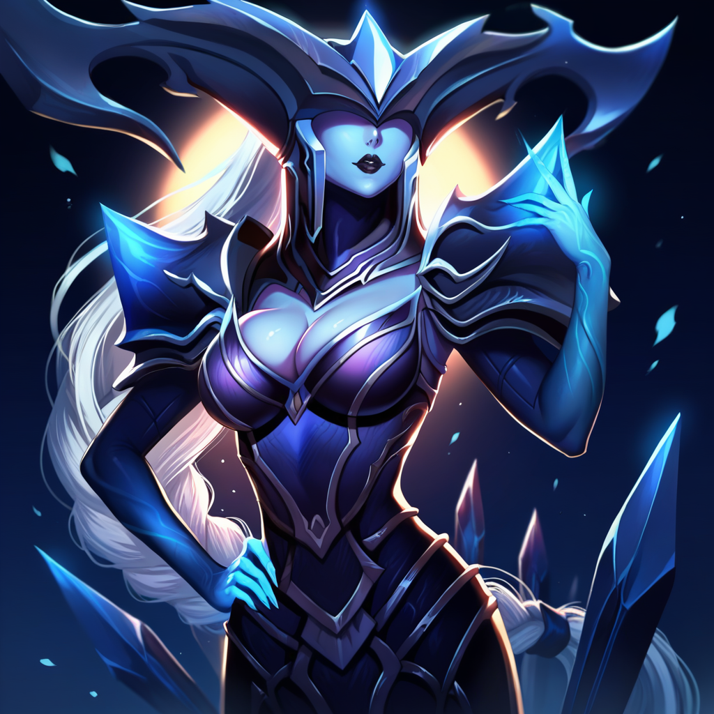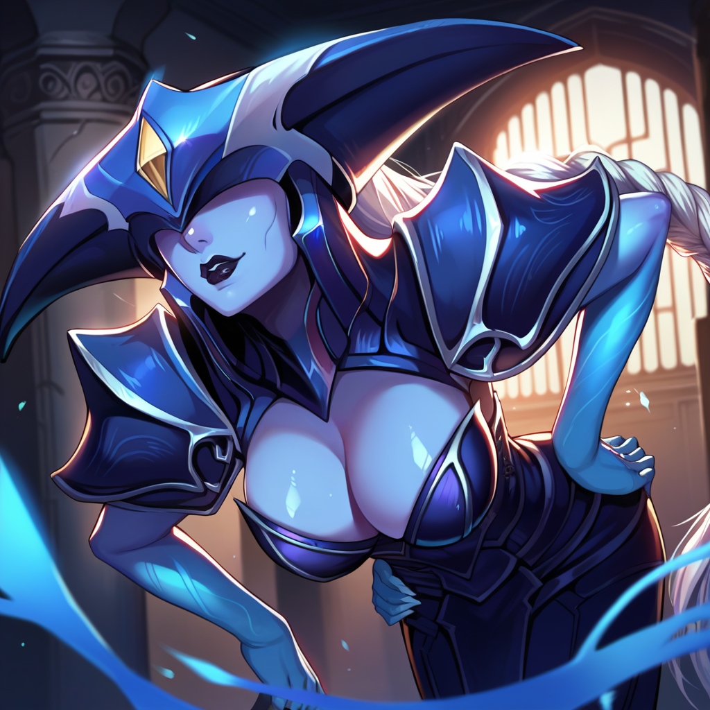 | 训练词汇 | Lissandra, 1girl, solo, white hair, very long hair, braid, colored skin, blue skin, breasts, cleavage, shoulder armor, long hair, armor, pauldrons, helmet, lipstick, large breasts, black lips, glowing, makeup, covered eyes已复制! Coven_Lissandra, 1girl, breasts, long hair, dress, solo, cleavage, large breasts, bare shoulders, blonde hair, detached sleeves, covered navel, covered eyes, white dress已复制! |