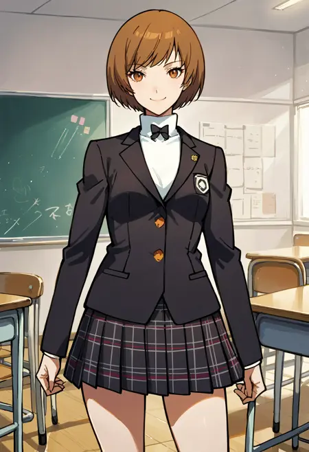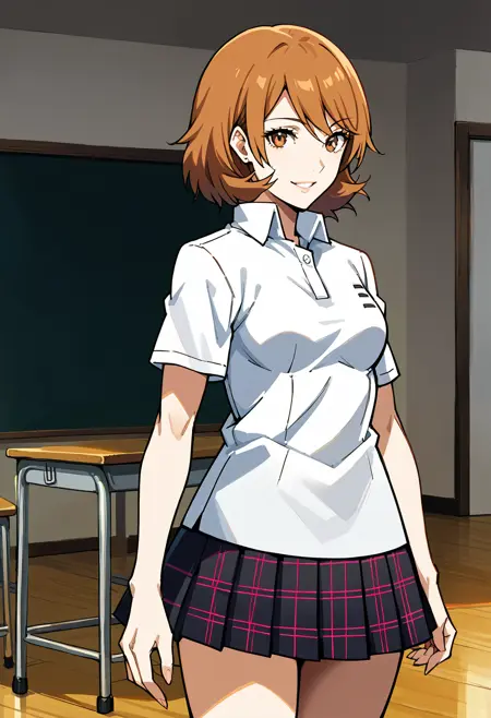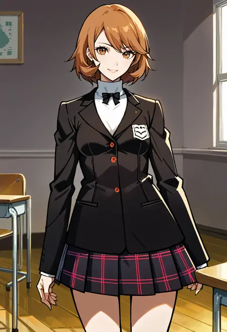 来自《女神异闻录5》的朱雀学院女生校服,包括标志性的冬季校服(带背心外套)和备用的夏季校服(白色Polo衫)。