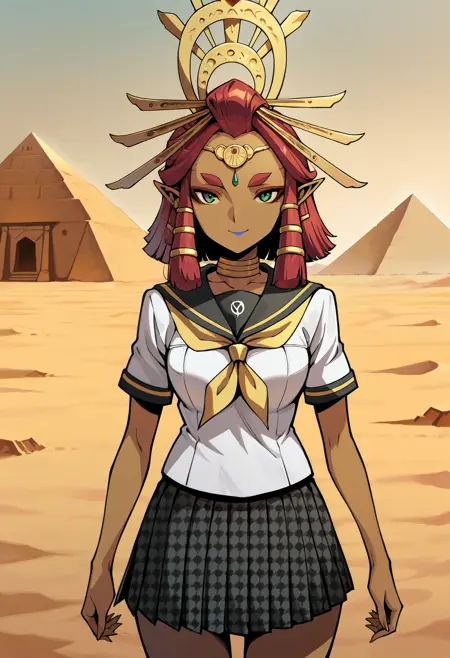 女孩身着《女神异闻录4》中的八神高中校服,包括带有背心的冬季校服和带有白色短袖衬衫的夏季校服。