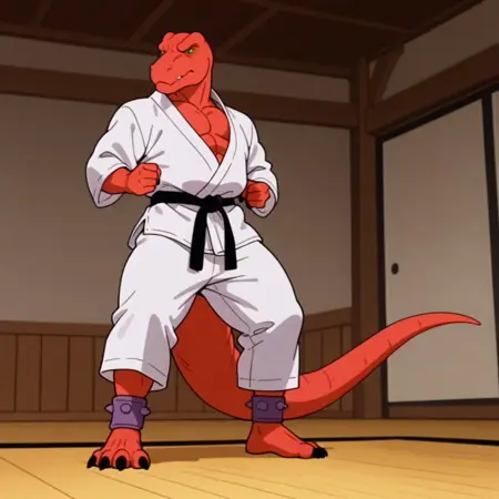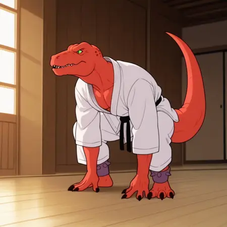| 학습된 단어 | GRexdsIL, anthro, male, Tyrannosaurus, red skin, green eyes,복사됨! purple wrist guards, blue shoulder pads, purple armor, orange trim, purple and blue shorts, torn clothes, purple ankle guards복사됨! dougi, black belt, purple ankle guards복사됨! blue tank top, yellow belt, red shorts, wristbands복사됨! |