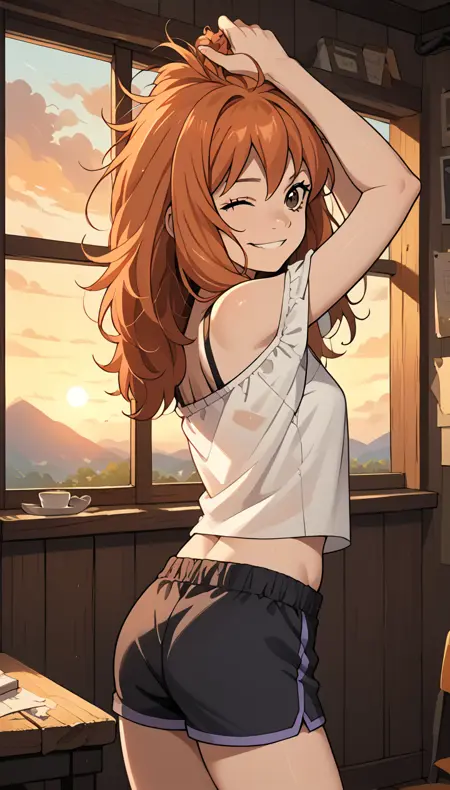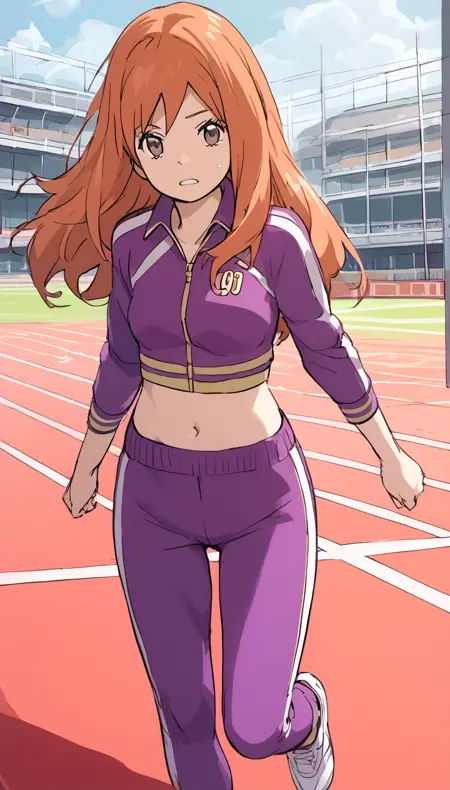 original dresscode: pink sweater, pants, blue pants, boots, brown footwear, red coat, open/closed coat, scarf, white scarf