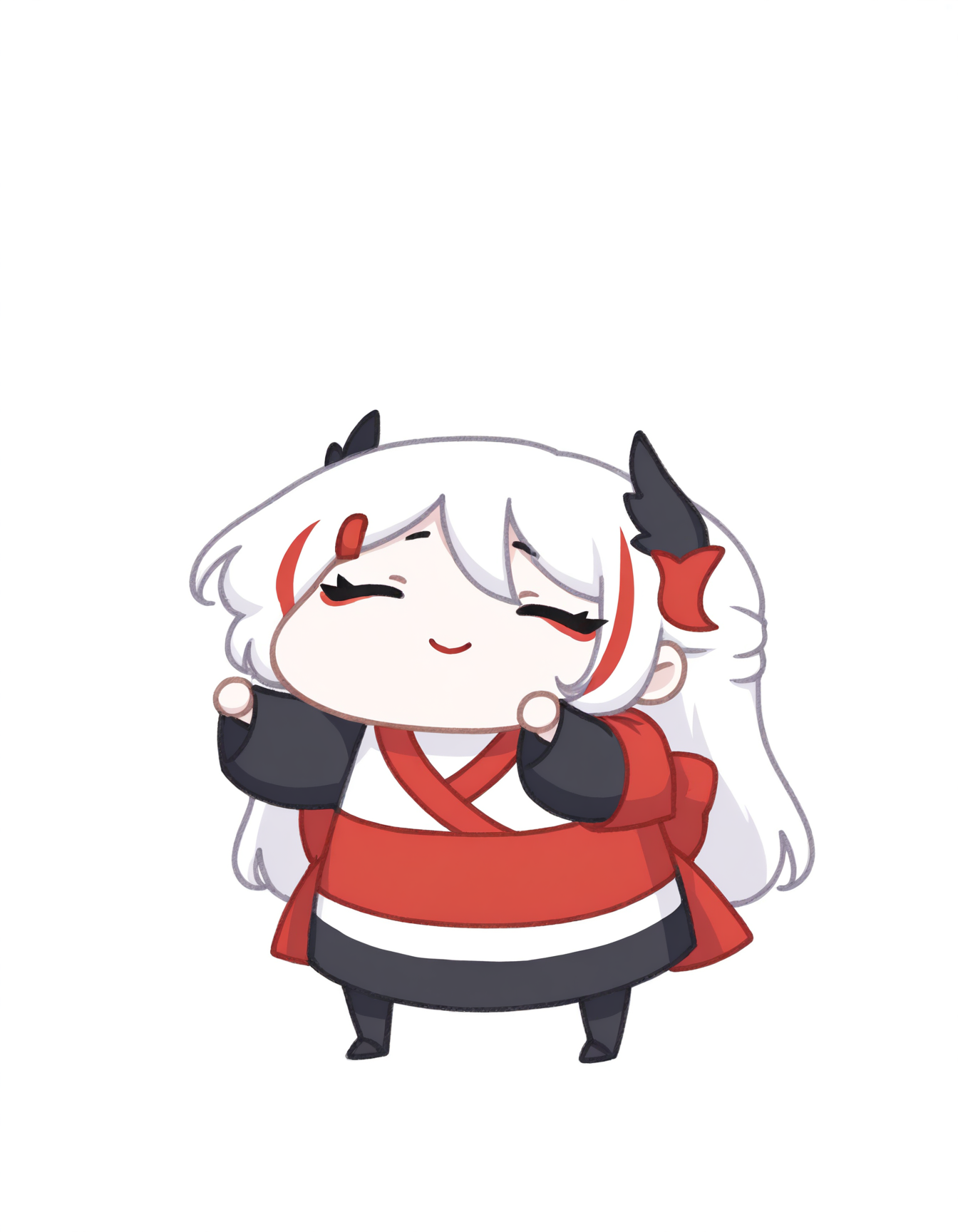 프롬프트: Tsuru-vkstickrs, 긴 흰 머리와 검은 머리, 닫힌 눈, 흑백 일본 복장, 빨간 립스틱, 헤어 클립, 하얀 목, 빨간색과 검은색 머리 장식.