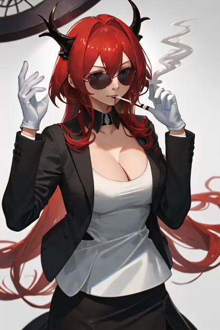The trigger word is surtr_arknights, and the pruned tags are red_hair, horns, long_hair, purple_eyes, breasts, very_long_hair, hair_between_eyes, demon_horns, medium_breasts. When some features (e.g. hair color) are not so stable at some times, you can add these them into your prompt.