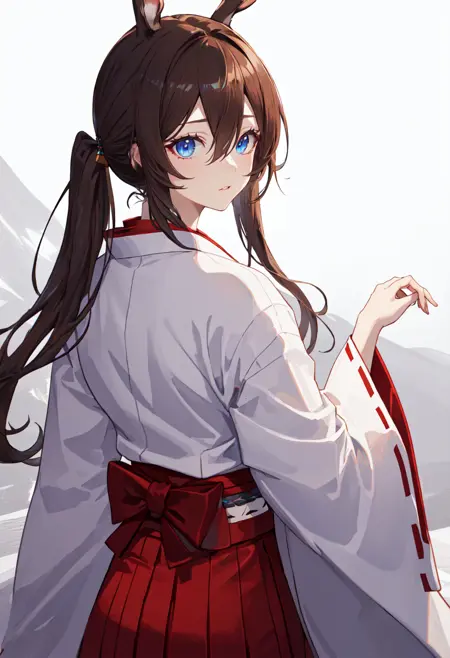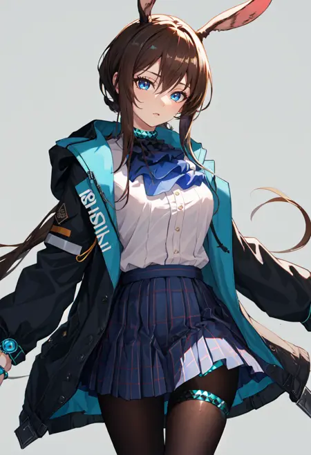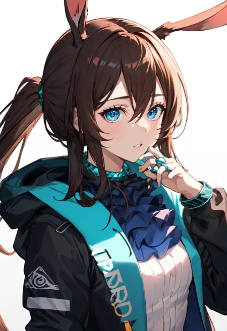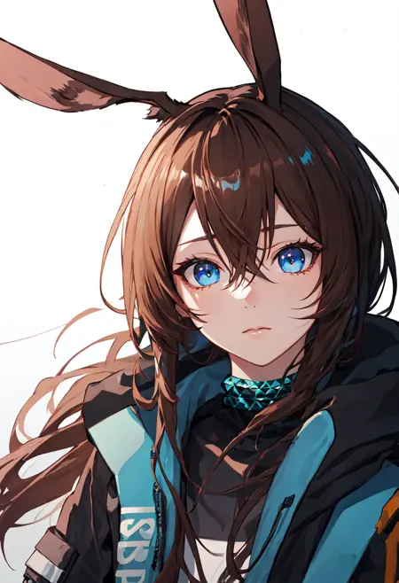 トリガーワードはamiya_arknights、省略されたタグはanimal_ears, brown_hair, rabbit_ears, long_hair, blue_eyes, hair_between_eyes, sidelocks, ponytail, very_long_hairです。あるときキャラクターの特徴(例:髪の色)が安定しない場合、これらのタグをプロンプトに追加できます